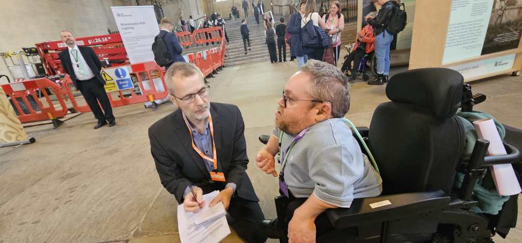 The lobby also provided a platform for media engagement. Dermot was interviewed by John Pring of Disability News Service and comedian and political commentator Nish Kumar from Pod Save The UK, helping to amplify the voices and concerns of disabled people to wider audiences.